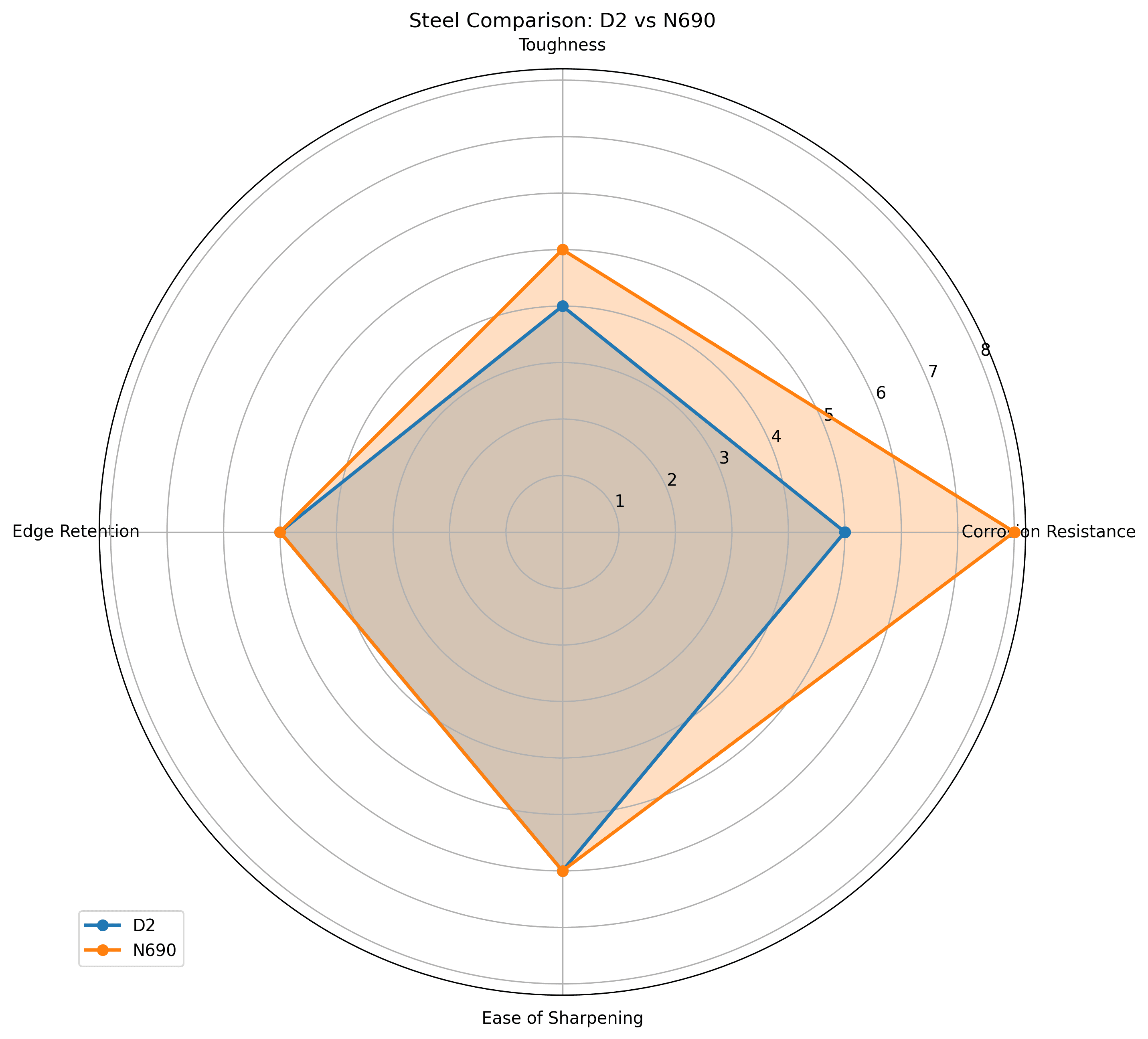 | PROPERTY | D2 (Tool Steel) | N690 (Stainless) |
